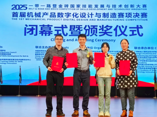 10月25日,2025第九届一带一路暨金砖国家技能发展与技术创新大赛——“首届机械产品数字化设计与制造”赛项全国总决赛激烈开赛,广西河池大化瑶族自治县职业技术学校(简称“大化职校”)组团帮扶教师蓝天然与学生黄倩并肩作战、发挥卓越,双双斩获“金牌”,蓝天然获教师组“一等奖第一名”和“优秀指导教师”奖,黄倩获学生组“一等奖第二名”,晋级国际总决赛。
